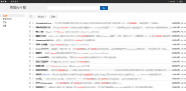 酷灵商情把从互联网监测到的数据通过收件箱的方式展现出来,办公室用户可以通过PC浏览器访问商情系统,外出用户同样可以使用移动设备像收邮件一样便捷地查看企业资讯,并对商情进行特殊处理如:加星、贴标签、标记、高级搜索、Excel导出等等。